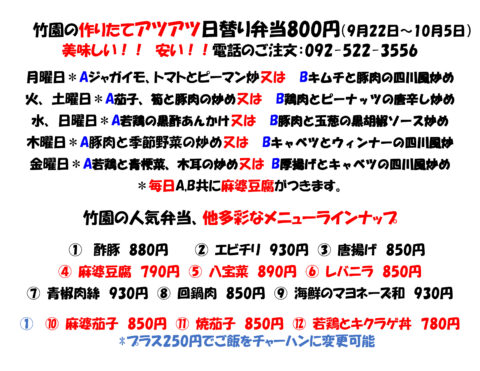 今週の日替わり弁当R7年9月22日