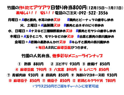 今週の日替わり弁当R7年12月15日
