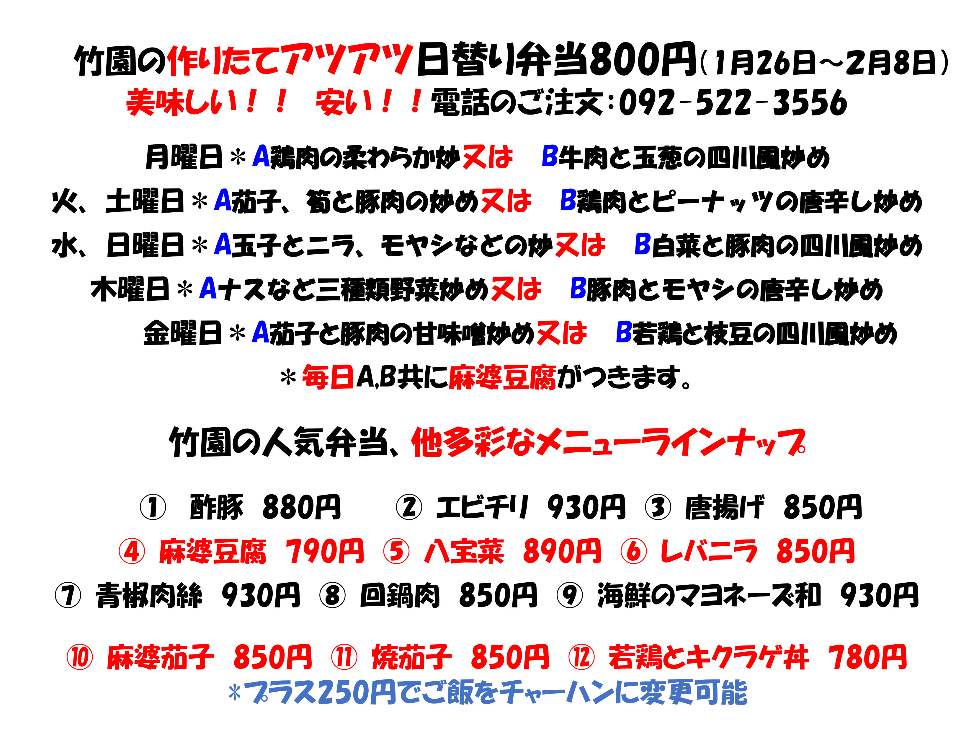 ホーム | 店内メニュー | 宅配サービス | 日替わりメニュー